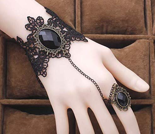 Five Season King.Mi 1pcs Handmade Retro Black Lace Vampire Slave Bracelet with Fabric Flower And Red Resin Gothic Style (J)