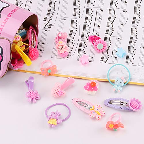 ★ 60 pezzi accessori per capelli ★ - Incluso 20 pezzi Cravatta per capelli elastica a stili multipli, 20 pezzi Barrettes carine, 10 pezzi Mini artigli per capelli, 10 pezzi Anello da cartone animato, Disegni di moda sono abbastanza per il tuo piccolo tesoro per creare tutti i tipi di bei capelli Messa in piega.