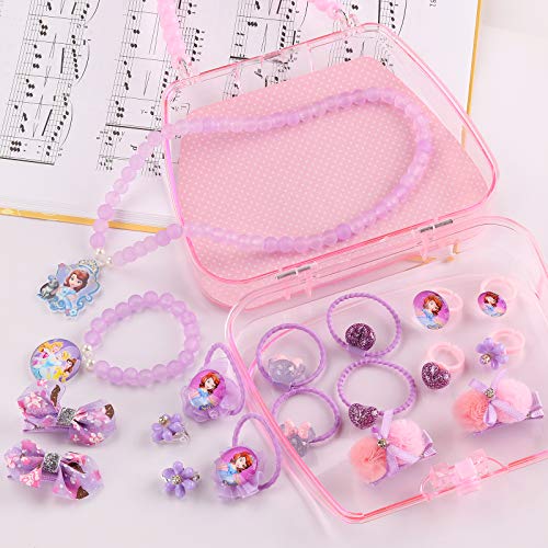 Seatecks 18 Pezzi Gioielli Svegli per Le Bambine Borsa di Plastica, Collana Bracciale Anello Orecchino Fermacapelli Fermacravatte Set Regalo per Principessa Gioielli Bambino Vestire-Porpora