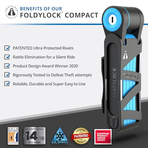 FOLDYLOCK Compact Bike Lock Blocco Catena per Biciclette Compatto a Lunga Durata, Pieghevole (Custodia Inclusa) 31.5" 80cm disteso Blue