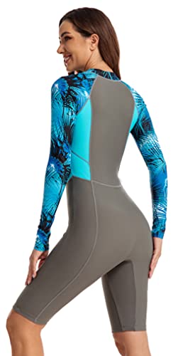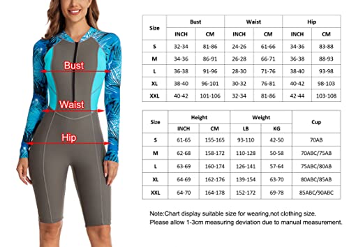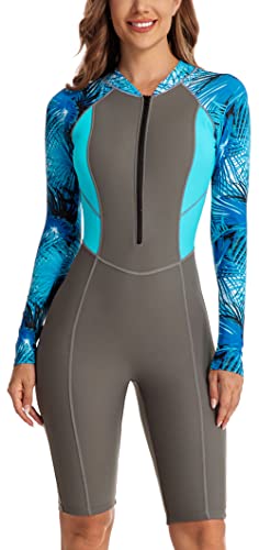 SEAUR Costume da Bagno a Maniche Lunghe da Donna Costume da Bagno Protezione Solare Stampata Muta con Zip Muta Muta Rapida Asciugatura Blu 1 S