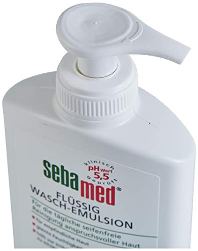 Sebamed Emulsione liquida all'oliva in dispenser igienico da 200 ml, la formula detergente extra delicata e senza sapone nutre la pelle sensibile già durante la pulizia