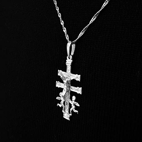 Sebaoth Croce di Caravaca Cristo Realce Angeles - 4 cm in rilievo - Argento Sterling 925 m - Made in Caravan, Argento, senza_gemma