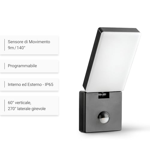Lampada per esterni con rilevatore di movimento e LED integrati e non sostituibili, Classe di protezione IP65 (protetto da getti d'acqua).
