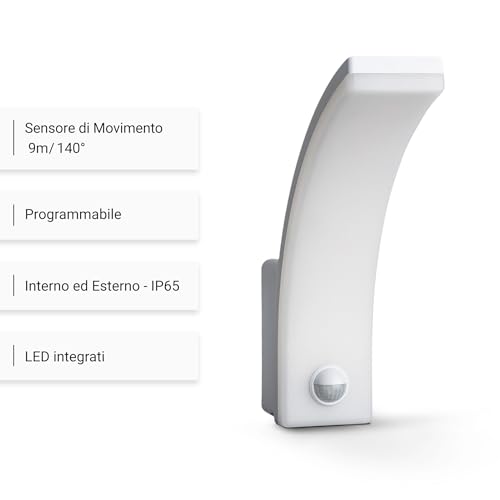 Lampada per esterni con rilevatore di movimento e LED integrati e non sostituibili, Classe di protezione IP65 (protetto da getti d'acqua).