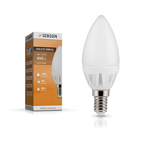 SEBSON E14 C37 5W Lampada a Candela a LED (pari a 35W), 400 lumen, bianco caldo, LED SMD, angolo di diffusione di 160°