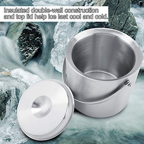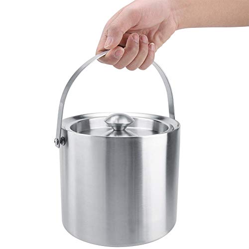 Secchiello per il ghiaccio coibentato con coperchio, Secchiello per il ghiaccio a doppia parete in acciaio inox con coperchio per utensili da bar(3L)