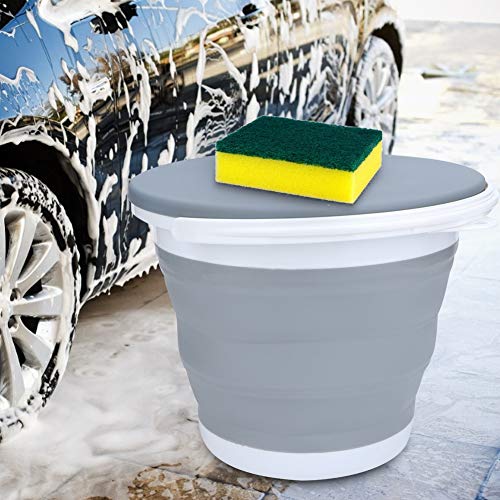 Secchiello pieghevole in plastica portatile con manico e coperchio, per pulizia auto campeggio da pesca, 9,8 x 8,1 pollici