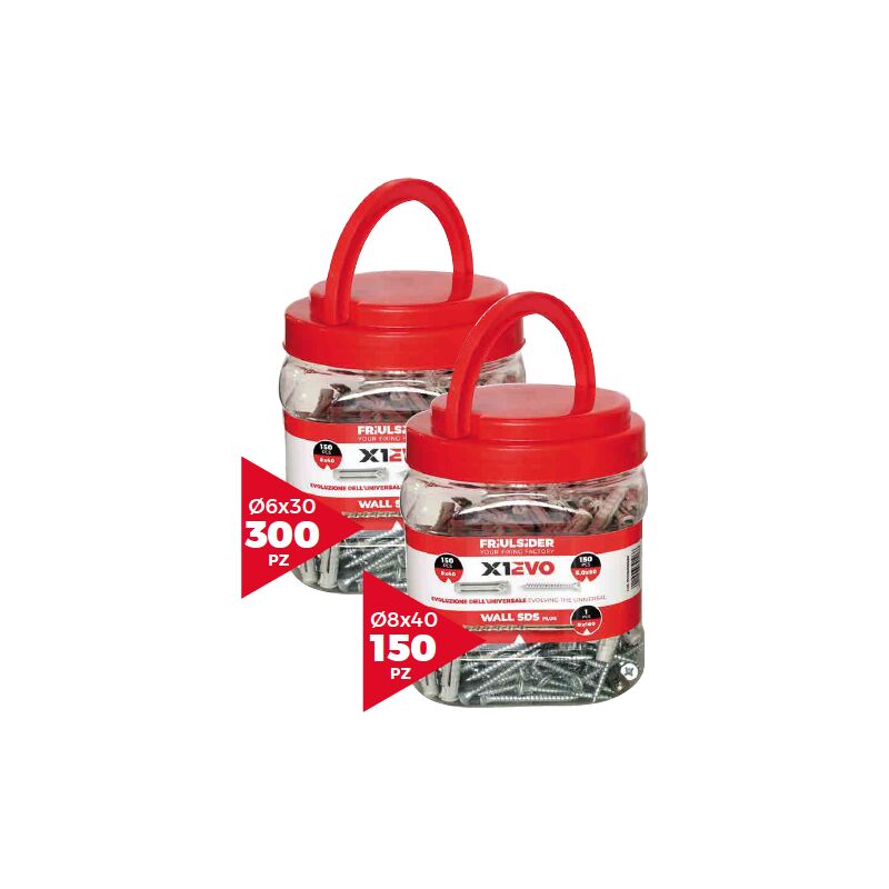 X1 evo Secchiello quadro Tassello in nylon vite truciolare interamente filettata zincata bianca wall plus punta sds