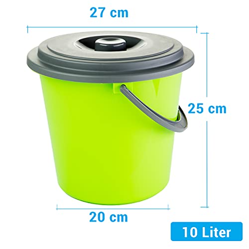 Secchio con coperchio, 10 litri, 3 pezzi, in plastica, per uso alimentare, 3 colori, prodotto in Europa
