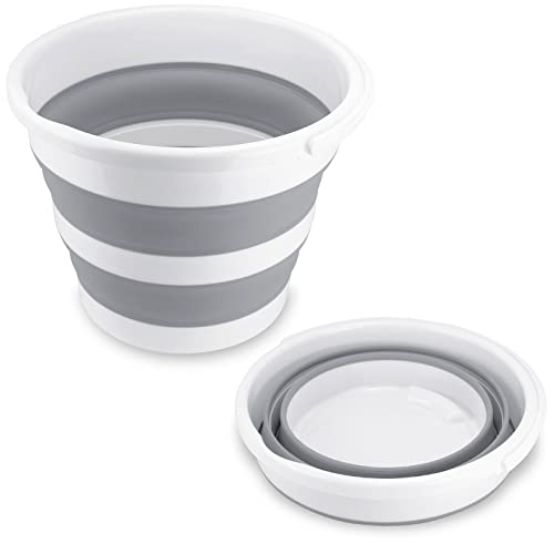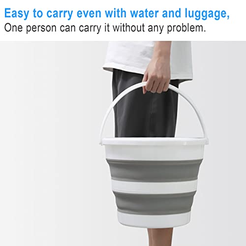 Secchio pieghevole aggiornato: secchio per acqua da pesca, secchio pieghevole con manico robusto per escursioni, campeggio, pulizia della casa dell'auto (secchio rotondo - 15 L)