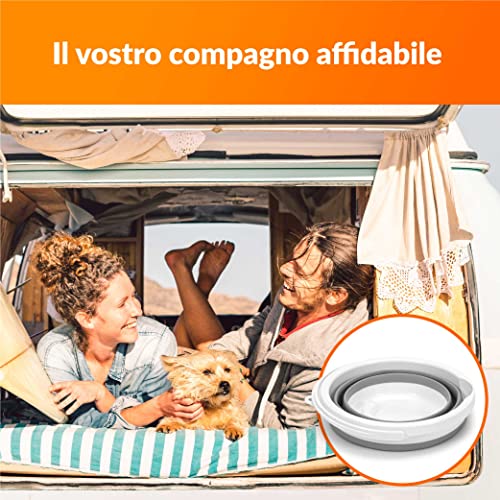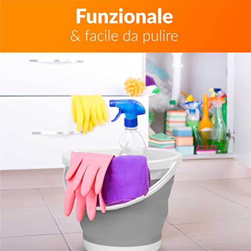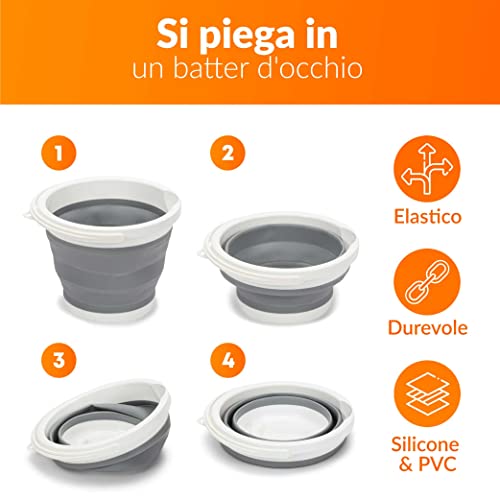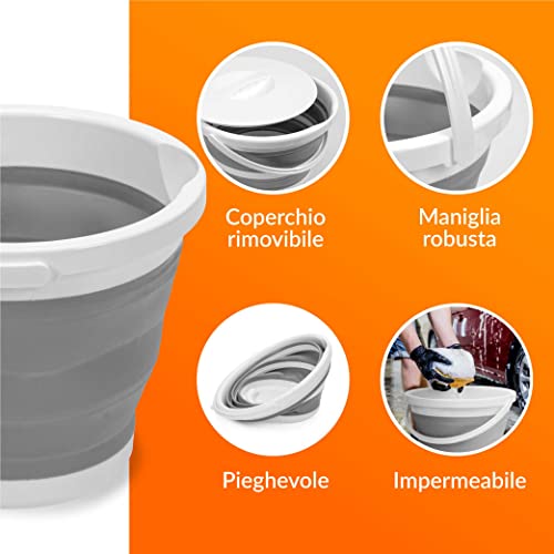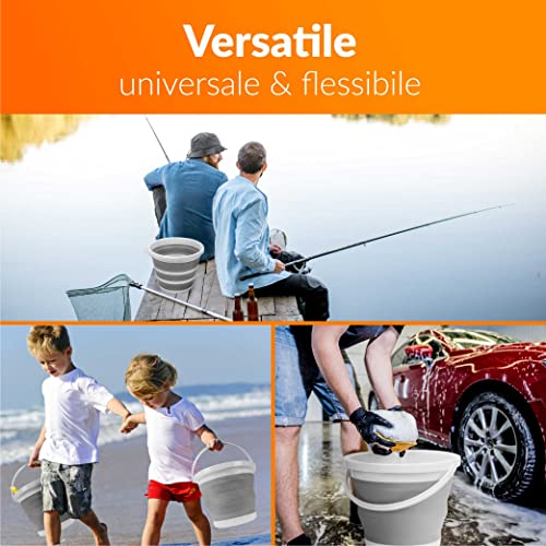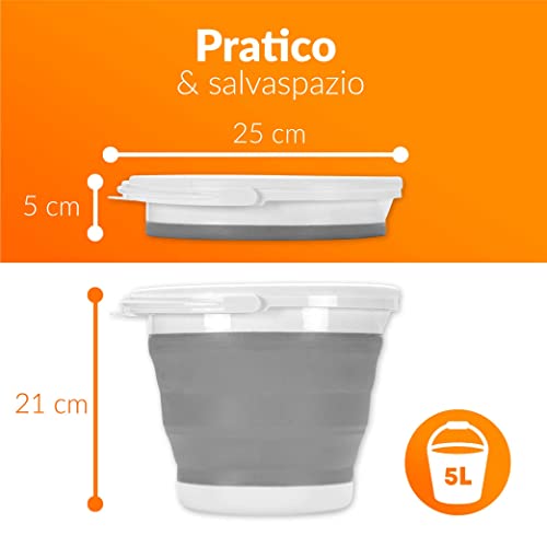 Secchio Pieghevole 5 Litri con Coperchio e Manico | Secchio 5l in Plastica e Silicone per Campeggio, Pesca, Pulizia, ecc. | Richiudibile & Salvaspazio
