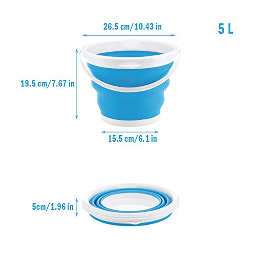 Secchio pieghevole, multifunzionale in silicone pieghevole con comoda maniglia, design pieghevole, facile da trasportare, salva spazio (blu 5l)
