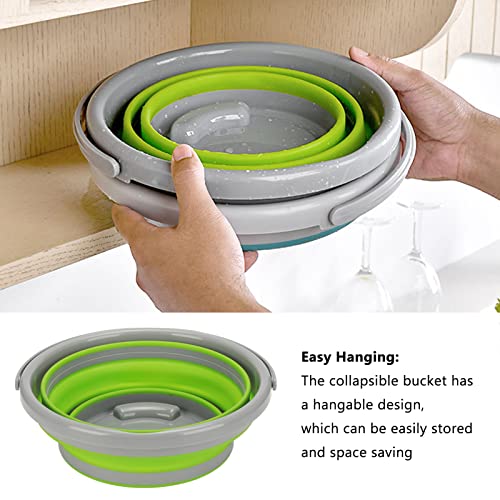 Secchio pieghevole per la pulizia del secchio Manico portatile Secchio in silicone verde Autolavaggio all'aperto Attrezzatura da campeggio da viaggio Risparmia spazio(tromba verde)