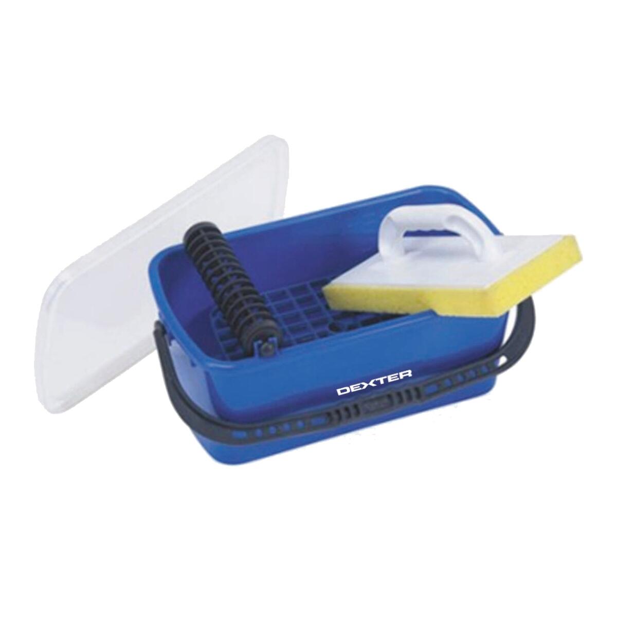 Completo di griglia, rullo cavo, frattazzo in spugna, coperchio. Capacità 10 L.. Ideale per il lavaggio delle fughe e piastrelle.