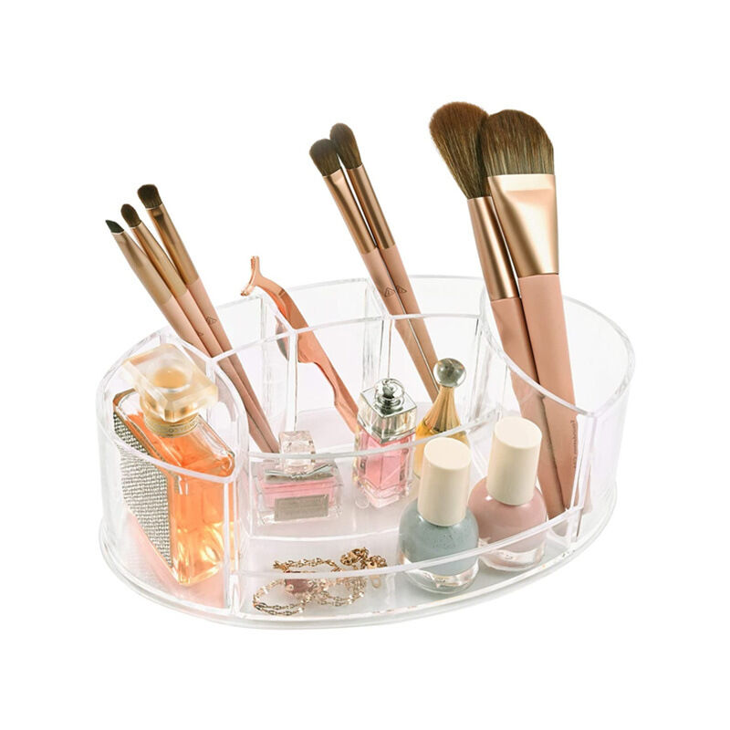 Secchio portautensili per pennelli cosmetici Ovale trasparente per rossetto da scrivania Pennello per bellezza Cartuccia portamatite per sopracciglia Materiale:Acrilico Tipo:Scatola porta pennelli per trucco