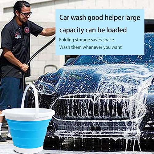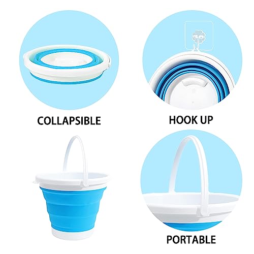 1 secchio portatile pieghevole da 5 l, 1 gancio trasparente, 1 panno blu per la pulizia, può essere utilizzato per uso domestico, campeggio, viaggi, barbecue, pesca.