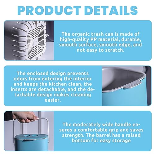 【Design intelligente】: Il secchio umido per compost a doppio strato per la cucina è dotato di una maniglia moderatamente ampia che consente una presa comoda e risparmia energia. Il fondo rialzato del secchio facilita l'appoggio. Bidone umido con coperchio L'inserto è rimovibile e il design smontabile facilita la pulizia.