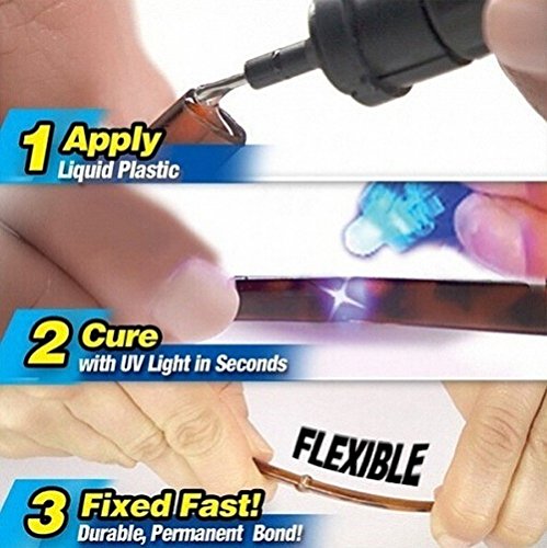 Senza colla. Super alimentato liquido plastica saldatura composto. Veloce e forte. Creare un Everlasting Bond in soli 5 secondi. Solo asciuga con UV luce così puoi posizionare e riposizionare la tua riparazione. Permanentemente riparazione in plastica, metallo, legno, vetro £ ¬ in alluminio, elastico, fibra di vetro, vinile, pelle e più