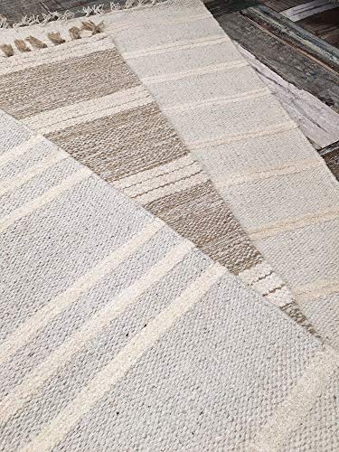 Second Nature Online - Tappetino in cotone e iuta naturali, motivo con righe triple, misura S, 60 x 90 cm, colore: grigio e bianco