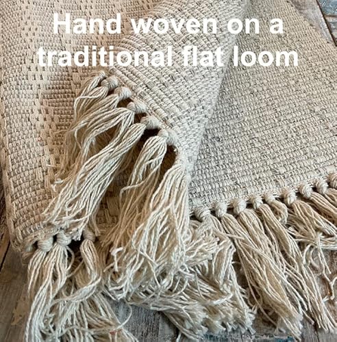 Second Nature Online - Tappeto Tarkarli in Cotone, Avorio Chiaro, Crema, Stile Indiano con Frange - 60 cm x 90 cm