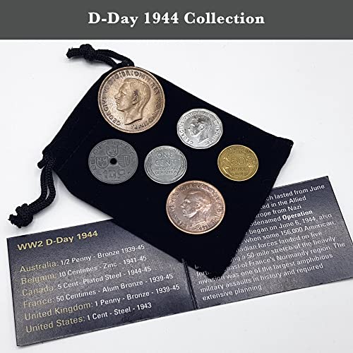 La storia nelle tue mani - Tieni in mano e studia i cimeli autentici della Seconda Guerra Mondiale che erano presenti durante uno dei periodi più difficili dell'umanità. Queste 6 monete sono un collegamento a vite reali e a storie non raccontate. Coniato tra il 1939 e il 1945 dai Paesi che hanno partecipato direttamente o indirettamente all'operazione Overlord, tra il giugno e l'agosto 1944. Australia, Belgio, Canada, Francia, Inghilterra e Stati Uniti.
