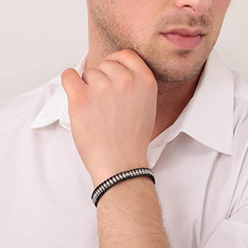 Sector No Limits Bracciale da uomo, Collezione BANDY, lunghezza 21 cm, in acciaio e pelle, con cordino in nylon - SZV45