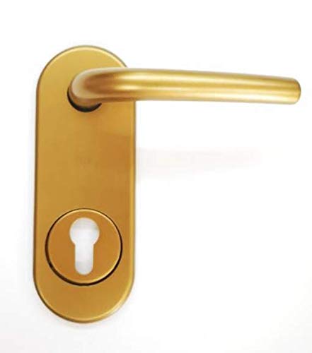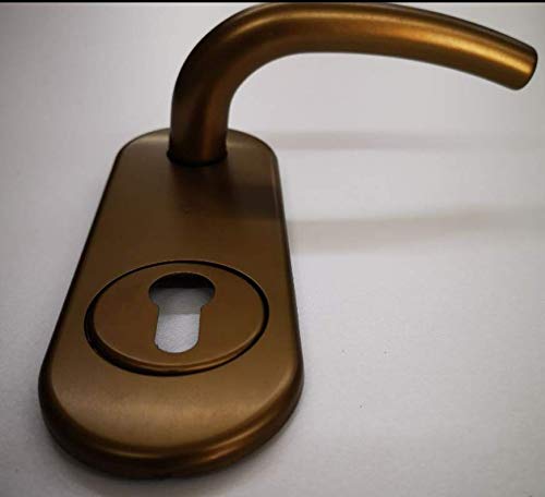 Kit Como Securemme placca+maniglia in alluminio F4 bronzato-Mostrina-borchia Singola per porta blindata Q8 foro cilindro europeo pz 1