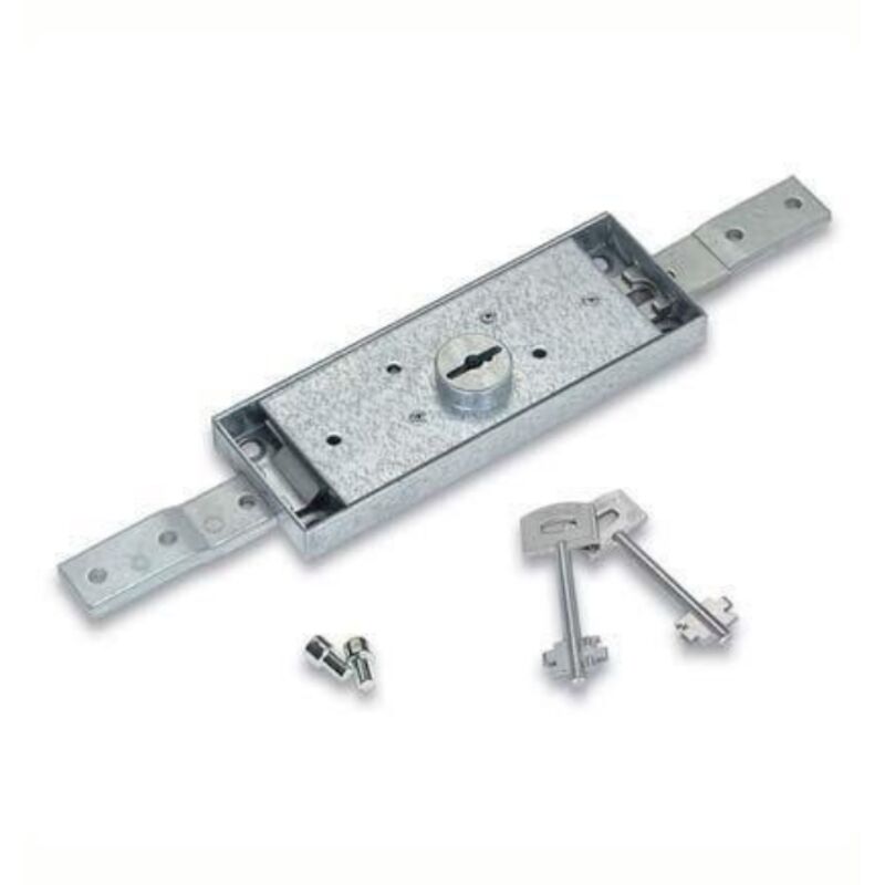 Securemme serratura serranda applicare 2205 Cilindro fisso Catenaccio doppio dritto rinforzato Chiave a doppia mappa Securemme serratura serranda applicare 2205, Con cilindro fisso a doppia mappa da Mm. 25 di diametro. Per installazione centrale sinistra con catenacci dritti rinforzati. Movimentazione con chiave sia dall interno che dall esterno. Corsa catenaccio Mm. 20. Scatola in acciaio zincato da Mm. 156x56, spessore Mm. 16. In dotazione: 2 chiavi a doppia mappa.