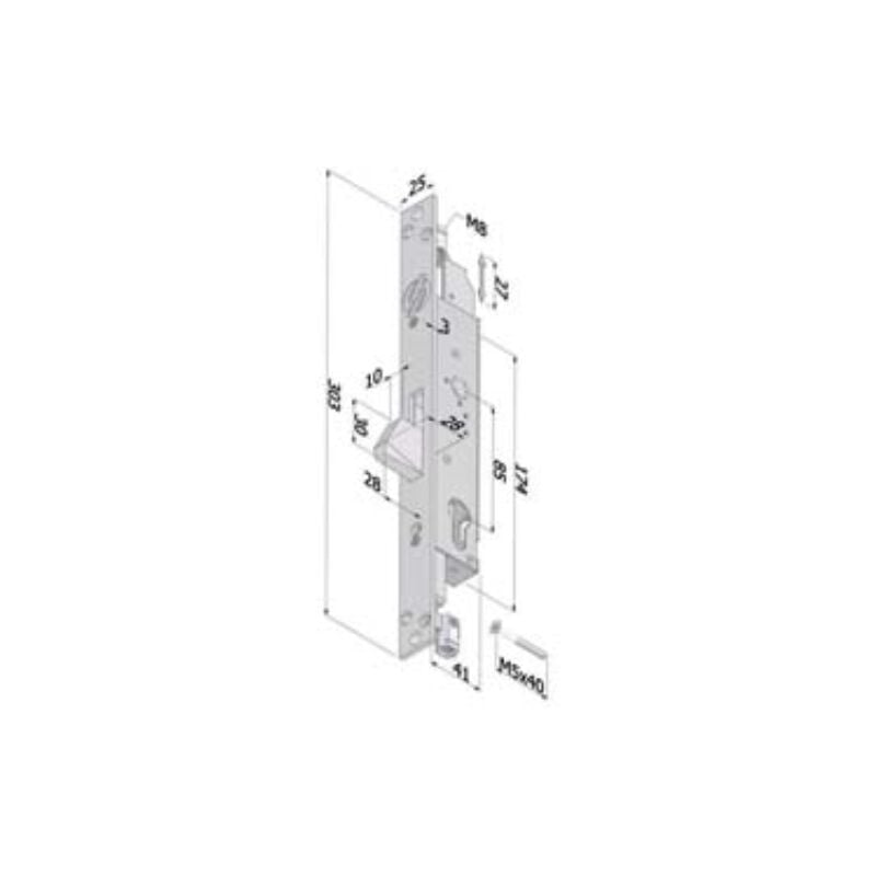 Mm.25 (2153xzb2525) scatola e frontale in acciaio zincato - serratura per grate e persiane a cilindro europeo - corsa aste mm.28 - funzionamento del catenaccio e delle aste ad ingranaggi comandate dal quadro maniglia e blocco tramite chiave a cilindro - fissaggio del cilindro con vite di testa - aste con attacco filettato m8 o ad innesto rapido - una linea robusta ed affidabile completamente intercambiabile con quelle in commercio ma con una maggior corsa delle aste e quindi una miglior sicurezza - cilindro non incluso Categoria merceologica: Serrature, chiusure di sicurezza e accessori - Sicurezza - Serrature per montanti da infilare