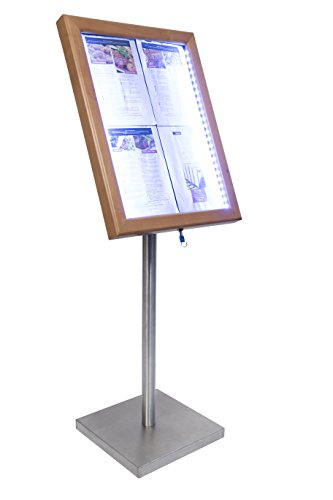 Securit Espositore luminoso a LED in legno color Teck - A4x4 - Include spina e attacco a muro - Solo Display