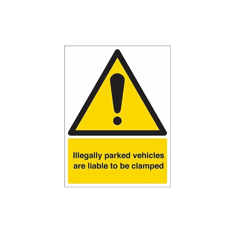 V Safety Security Avviso di sicurezza, Illegally Parked Vehicles Are Liable To Be Clamped Sign Ritratto 300 mm x 400 mm Vinile autoadesivo 300mm x 400mm