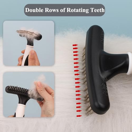 Secwell Pettini a Rastrello per Cani e Gatti Denti Rastrello Rotanti Rake Pettine con Doppia Fila di Denti Bianco