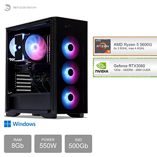 Sedatech PC Gaming Expert • AMD Ryzen 5 5600G 6x 3.9Ghz • Geforce RTX3060 • 8Gb RAM • 500Gb SSD M.2 • Windows 11 • Computer Desktop