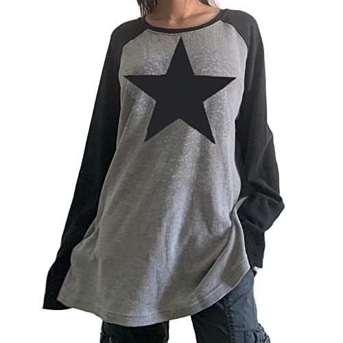 Stile di tendenza: top gotico, abiti y2k, estetica punk, grunge fairy core, harajuku, goth dark academia, grafico a stelle, top a maniche lunghe, streetwear a collo rotondo, maglietta da donna.