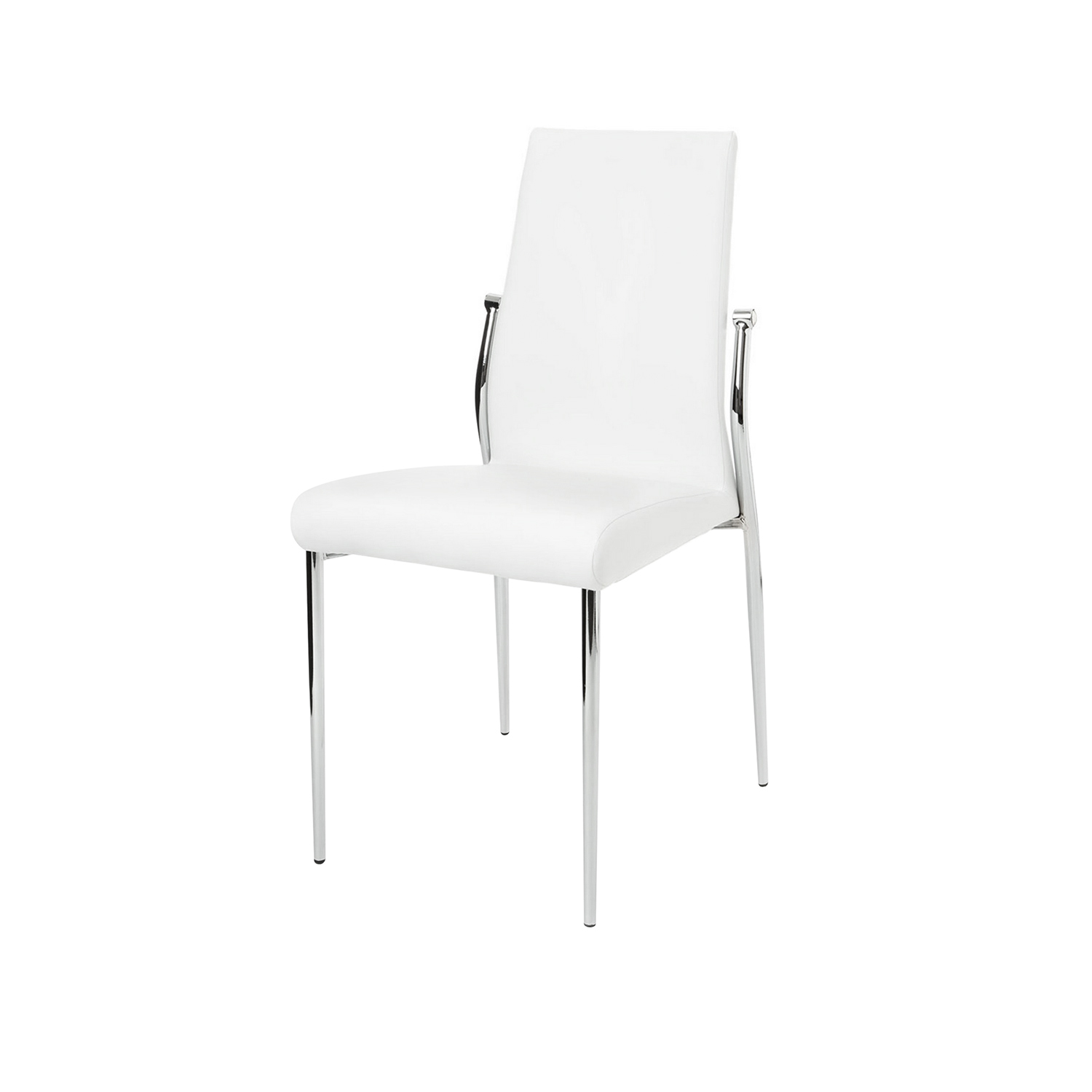La sedia Hudson di OresteLuchetta, brand del gruppo Tomasucci, colpisce grazie alla sua semplicità e al suo look sobrio e versatile. Il design è moderno ed essenziale, mantenendo una base classica. La struttura è in solido metallo cromato, per offrirti tutta la stabilità di cui hai bisogno. La seduta e lo schienale sono rivestiti in elegante pelle sintetica di colore bianco. Dimensioni: 41x85x53 cm. Altezza seduta: 46 cm. Portata massima: 90 Kg. Si lava facilmente con un panno umido. Le istruzioni per un semplice e sicuro assemblaggio sono incluse nella confezione.