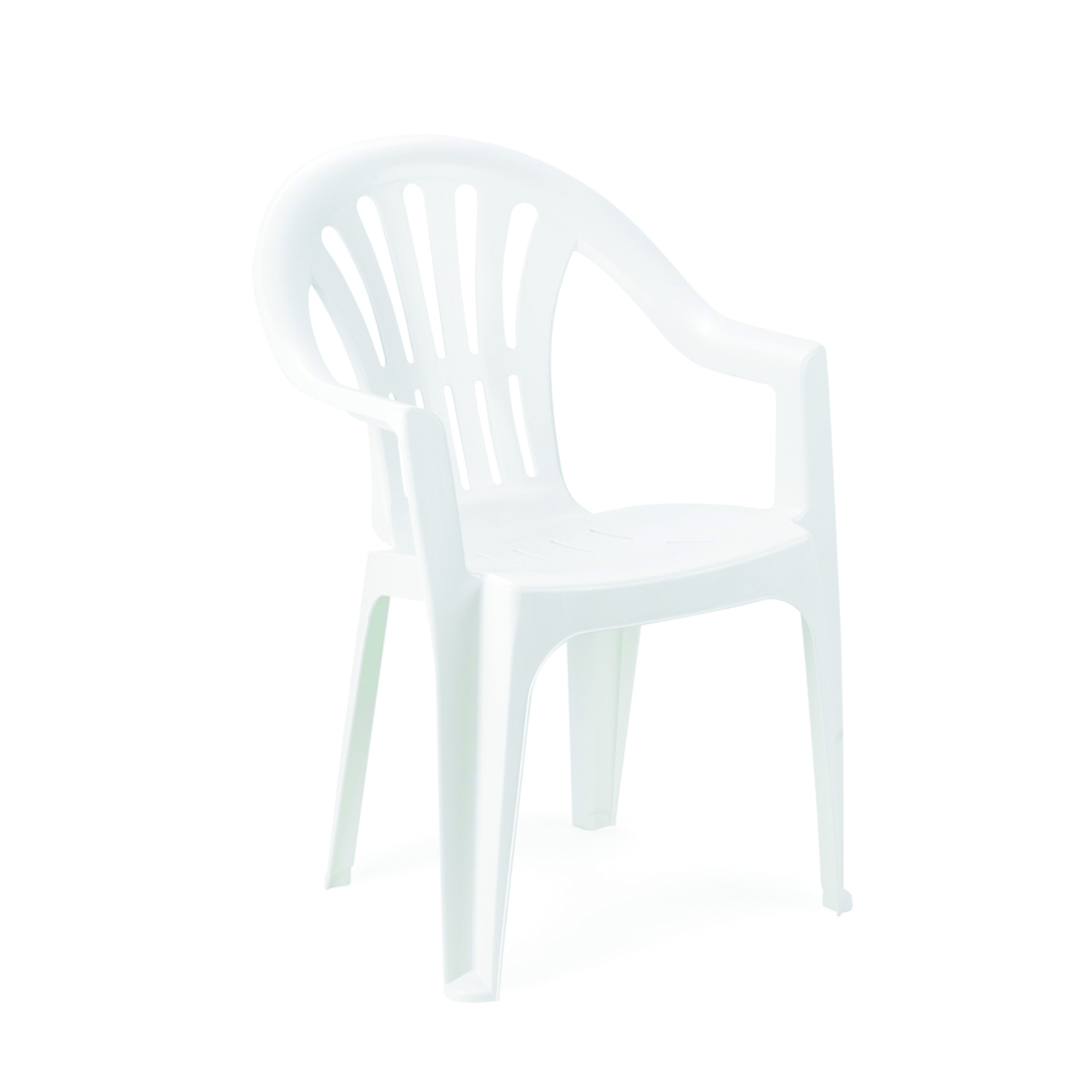 Struttura in polipropilene. Adatta ad uso quotidiano. Impilabile, garantisce il massimo risparmio di spazio quando non utilizzata. Resistente alla ruggine e alle deformazioni degli agenti atmosferici