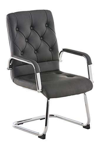 CLP Sedia Cantilever Claire con Braccioli -Sedia Elegante e Trapunta con Fodera in Similpelle - Sedia Ufficio per Ospiti Imbottita - Sedia Poltrona Attesa Grigio