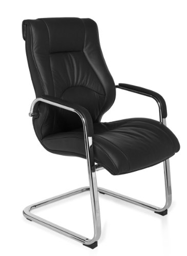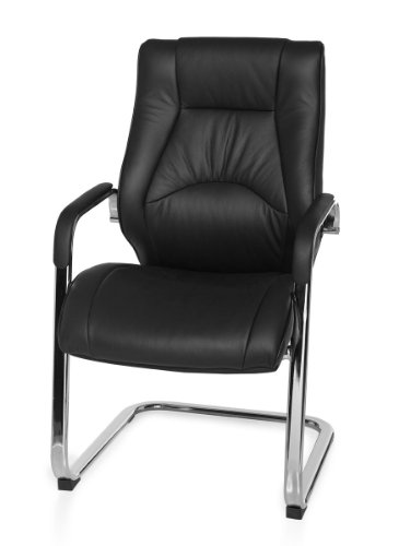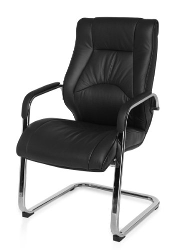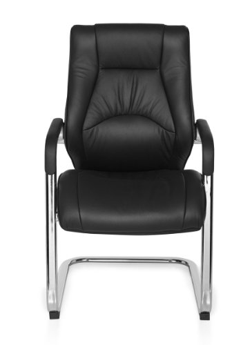 Sedia cantilever Rimini Visitor visitatori Sedia con braccioli, Sedia da conferenza in vera pelle NERO