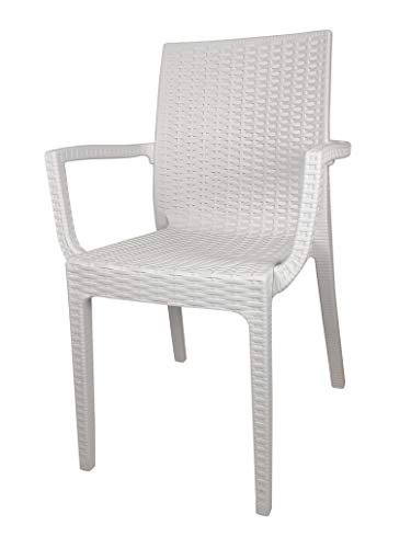 Sedia Dafne, in Resina, Simil Rattan, Poltrona con Braccioli, Vari Colori, Esterno, Giardino, Alta qualità, Impilabile (2, Bianco)