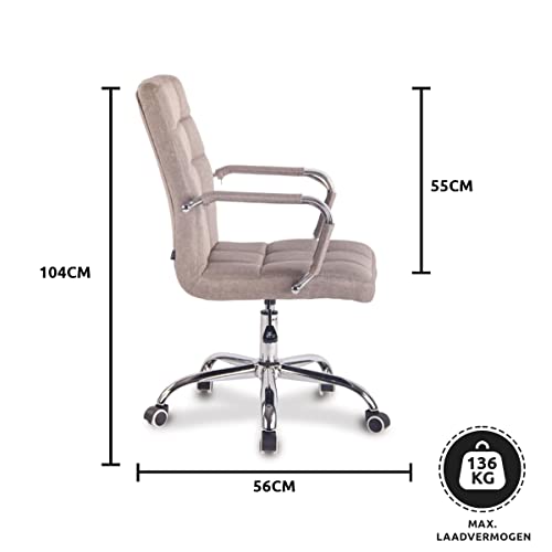 CLP Sedia Design Ufficio Deli in Stoffa I Poltrona Scrivania Imbottita I Sedia Studio Girevole E Regolabile Alt 45-55CM, Colore:Tortora