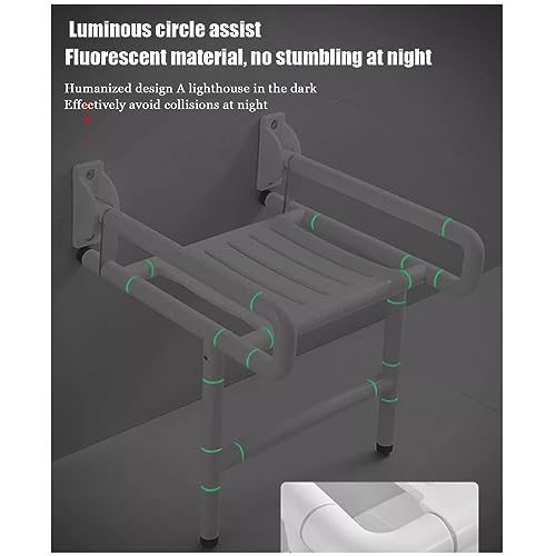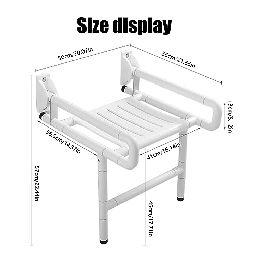EEUK Sedia da Muro Doccia per disabili, Seggiolino per Doccia Anziani Pieghevole con Gamba di Supporto E braccioli Sgabello per Doccia Antiscivolo per Anziani, Donne Incinte(Color:White)