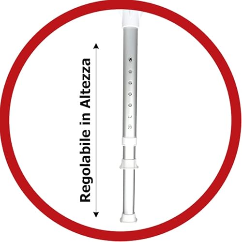 Quattro gambe in alluminio anodizzato regolabili in 7 posizioni con impugnature laterali e scarichi per il deflusso dell'acqua
