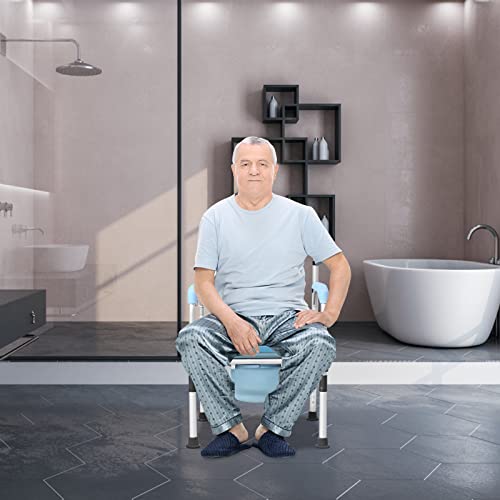 LZQ Sedia da doccia regolabile in altezza, per anziani e disabili, sedia da WC pieghevole, con braccioli e schienale e secchio per WC, portata fino a 200 kg