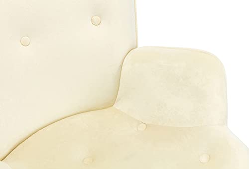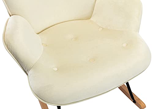 CLP Sedia A Dondolo Sanka in Velluto I Poltrona Relax Trapuntata e Imbottita I Schienale Alto E Braccioli I Stile Chesterfield, Colore:Crema