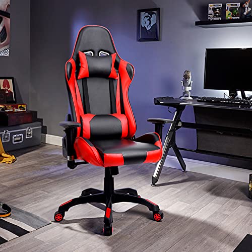 Sedia da gaming, sedia da gaming ergonomica, sedia da scrivania con schienale inclinabile a 160°, PU e 2D regolabili, braccioli regolabili, sedia gamer carico massimo: 125 kg, colore: Rosso