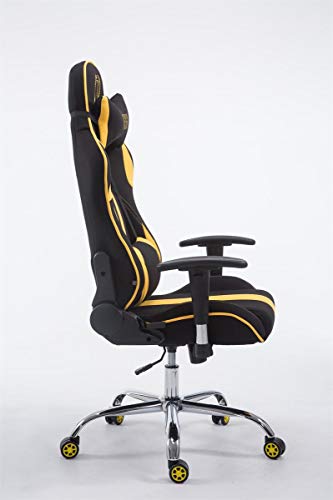 CLP Sedia Gaming Ufficio Limit XL in Stoffa I Poltrona Racing Rinforzata Max 150 kg I Poltrona Ergonomica con Ruote, Colore:Nero/Giallo, Poggiapiedi:Senza poggiapiedi