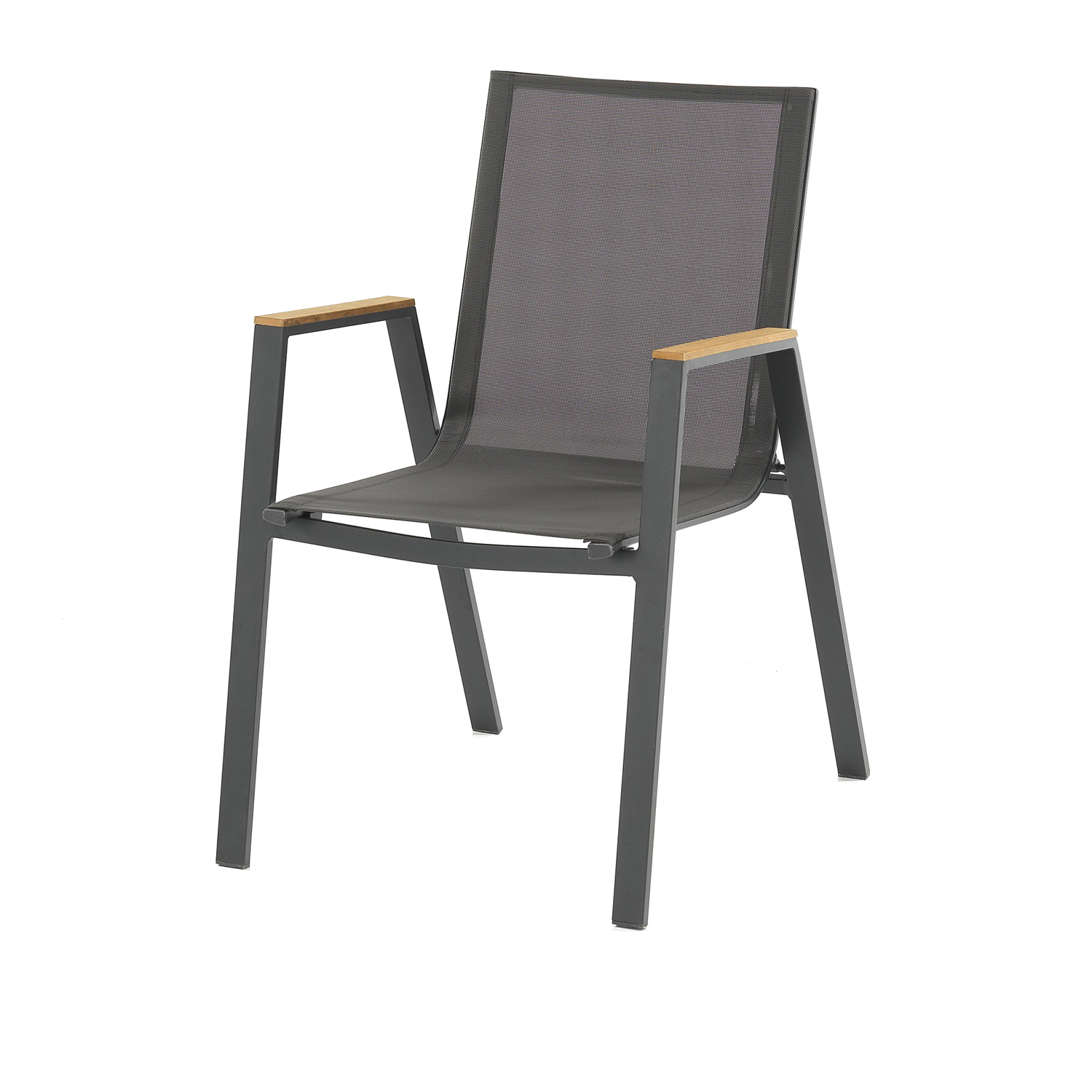 Questa comodissima sedia con braccioli è adatta sia ad interni che ad esterni. Novah è realizzata da OresteLuchetta, brand del gruppo Tomasucci, garanzia di qualità ed innovazione. La struttura della sedia è in resistente polywood, con schienale e seduta in tessuto di poliestere grigio per il massimo comfort. Il risultato è una sedia dal design moderno, ultra versatile e davvero pratica. La bellezza delle linee e del design è esaltata dal contrasto di colori tra il grigio del tessuto ed il bellissimo rovere della struttura. Portata massima: 90 Kg. Dimensioni: 56x89x68,5 cm.
