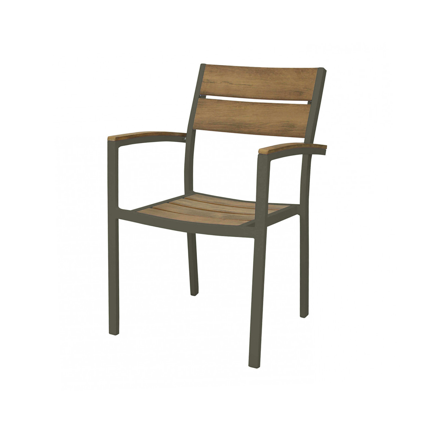 Arredare il tuo angolo di giardino o del terrazzo preferito, parte dalle sedute. Che siano comode e pratiche, proprio come questa sedia da giardino super funzionale. Ha una struttura in alluminio, resistente e pratica, disegnata per rendere la sedia impilabile. La finitura semiopaca taupe aggiunge quel tocco di eleganza che rispecchia tutto il tuo gusto per i dettagli moderni. Seduta, schienale e braccioli sono in polywood color teak. Abbinabile al tavolo dello stesso colore. Dimensioni: 56x85x58 cm.