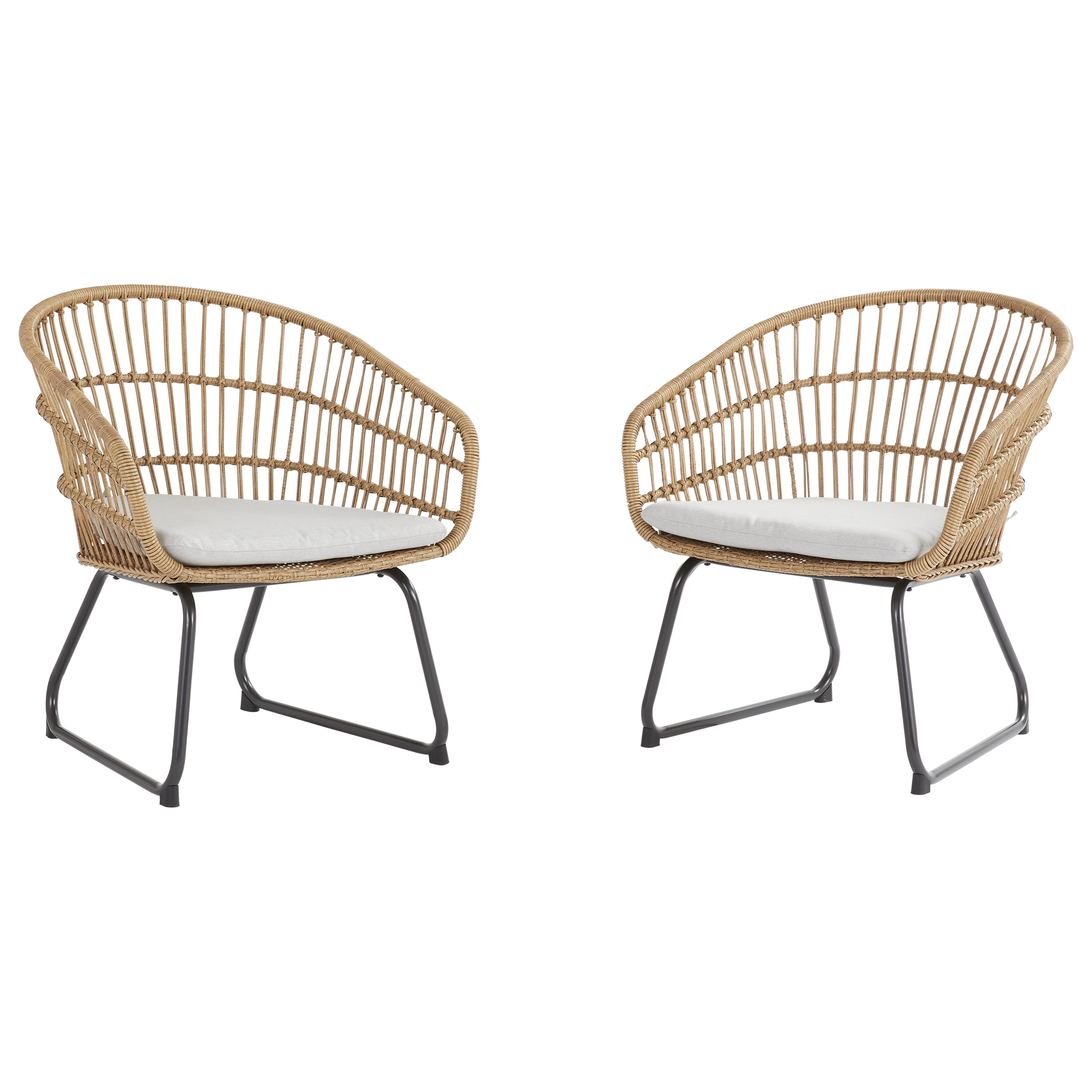 Struttura in acciaio, cuscino color marrone. Dim. L 67 x P 67 x H 78.5 cm. Versatile: rimuovendo i braccioli, le poltrone possono essere affiancate a formare un divano a 2 posti